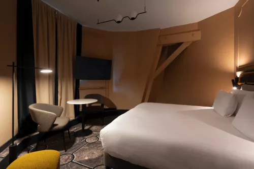 Après une longue journée, pénétrez dans votre nouvel eldorado de 16m2 pour vous détendre. Tous les éléments nécessaires à votre confort sont présents, pour votre plus grand plaisir. Dans un univers qui rappelle l’hôtellerie de la Belle Époque, dégustez un thé fumant depuis votre lit ou un café délivré par votre machine Nespresso. Le tout ? En regardant votre film préféré grâce à la chromecast.